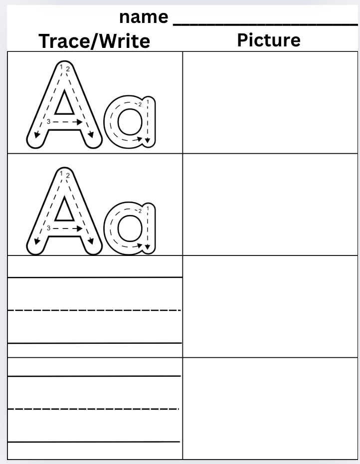 Trace and write uppercase + lowercase letters