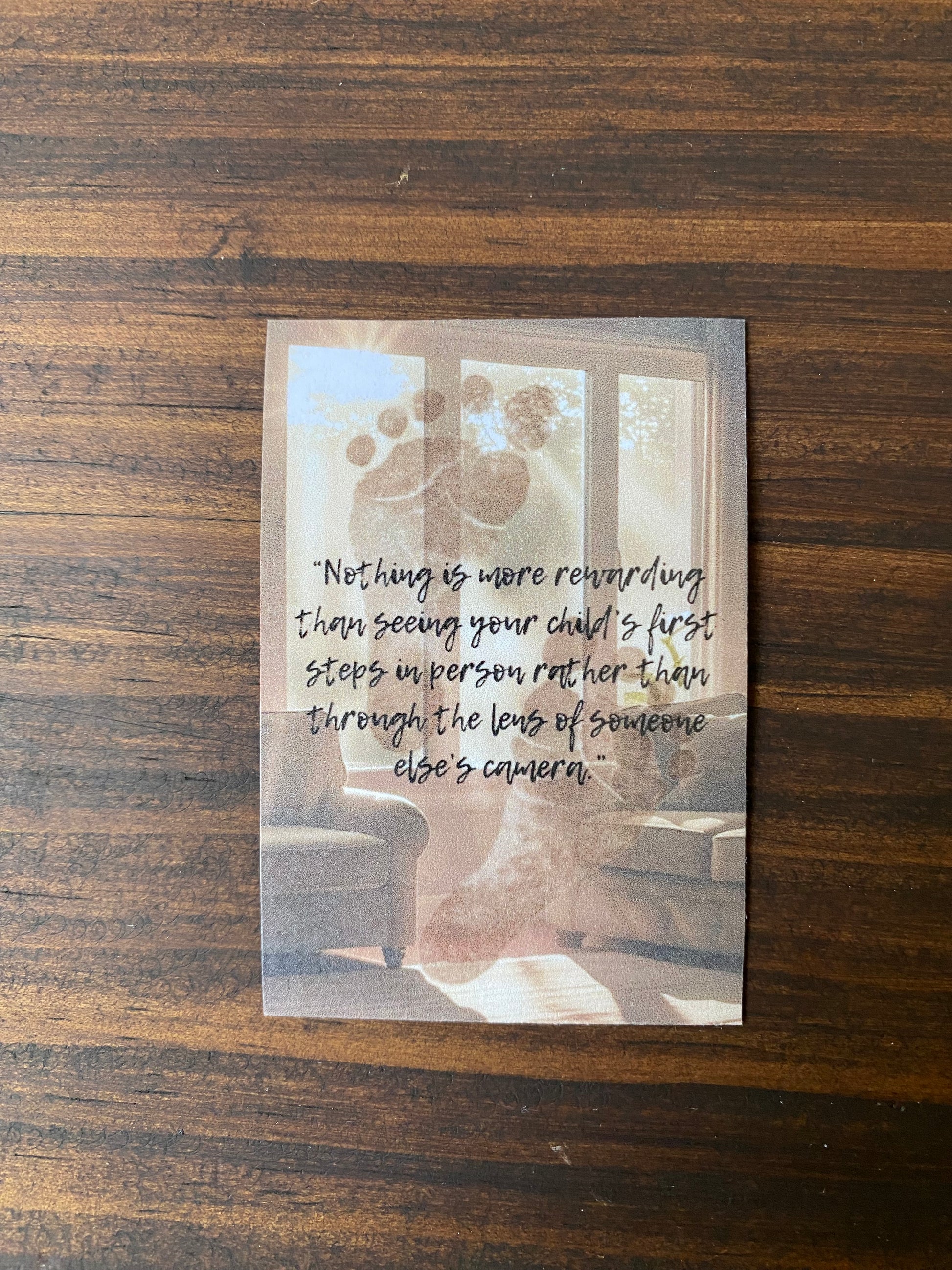 A quiet living room. Tiny footprints on glass. And a truth every parent feels deep down. This laminated magnet features the quote: