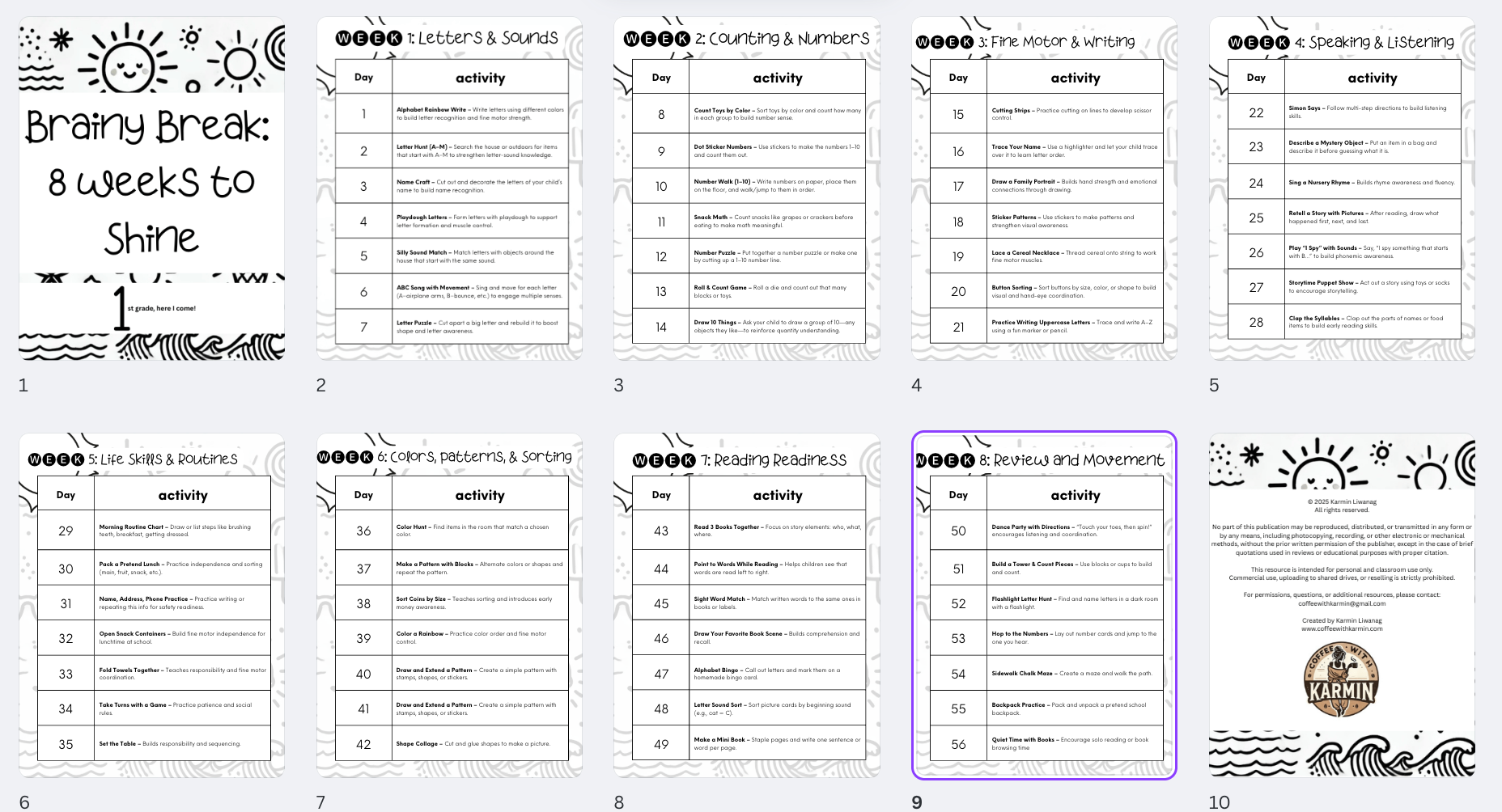 Keep your child’s skills sharp this summer without the overwhelm! Heading to 1st Grade: Brainy Breaks includes 8 weeks of fun, no-prep activities designed by a former kindergarten teacher to support key learning areas—without feeling like homework.