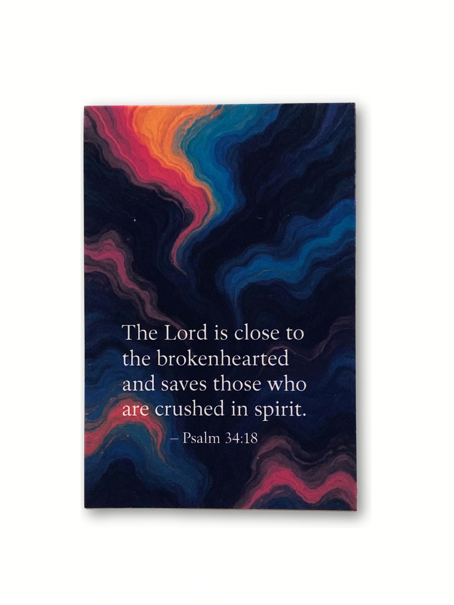 Carry a message of comfort and hope with this beautifully designed magnet featuring Psalm 34:18: “The Lord is close to the brokenhearted and saves those who are crushed in spirit.”
